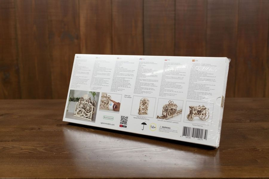 A Ugears termékek megtestesítik a természet egy darabkáját a szobában. A különleges, fa lemezekből álló játék önmagába véve kettős szerepet tölt be: először is izgalmas a megépítése, más részről kifinomult és letisztult, természetes dekorációs eleme a szobának, irodának vagy munkaállomásnak. A modellekben az elemek ragasztás nélkül összeilleszthetők, tervezésüknek köszönhetően tartós és időtálló darabok. Az összes modell mozgatható, vagyis valamilyen funkció végezhető vele (pl. a járművek fakerekeiken guríthatók, a dobozok nyithatók-zárhatók, más modellek tekerhetők, és a lendülettől mozognak). A Ugears famodellek természetes fából készülnek, natúr színük minden típusú polcok vagy asztalon jól mutat. A modellek fejlesztik a logikus gondolkodás, a finommotorikát és a kézügyességet, a szem-kéz koordinációt, és a térlátást. A különleges fa anyagnak köszönhetően az érzékelés-tapintás is fejlődik a játékkal, valamint segít a szabálykövetés elsajátításában (a megépítéshez útmutatót kell használni) és a mechanika alapjainak megértésében. Bártan ajánljuk Mindenkinek, aki szereti a modellezést, a kreatív és igényes játékokat, a kihívásokat, és a bütykölést, kézügyességet igénylő elfoglaltságokat. Mérete: 213*189*77mm. A játék 70 darabos. Az összeszerelés becsült ideje: 1-2 óra.