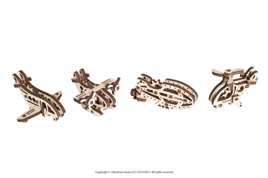 A Ugears mini Repülő modellek szett a repülés és modellezés szerelmeseinek tökéletes elfoglaltságát ötvözi. Az összeszerelés izgalmai után az ízlésesen mutató natúr repülőmodellek szép dekorációs elemei lehetnek a dolgozó- vagy gyerekszobának, illetve a nappalinak. A repülők alkatrészeit ragasztó és csavarok nélkül kell összeilleszteni az útmutató segítségével. Szuper elfoglaltság, fejlesztő játék és lakásdekor egy apró dobozban!